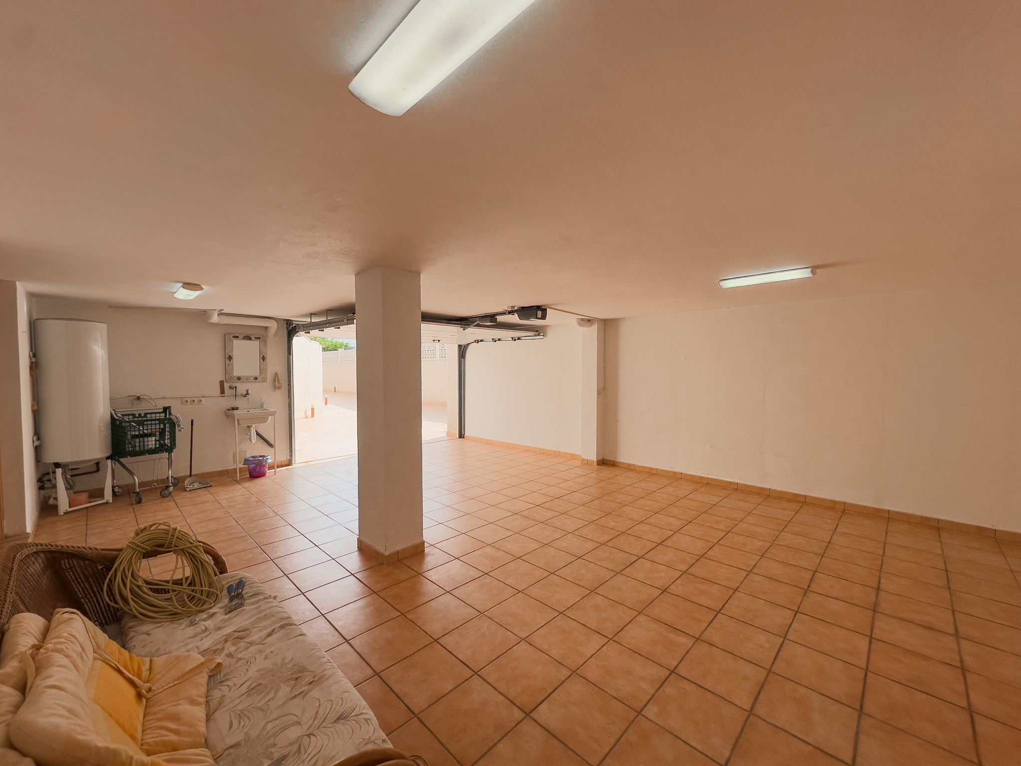 From the garage, stairs lead up directly to the bright and airy living room, or you can take the separate staircase by the garage to reach the front door and the expansive garden and terrace area. The outdoor space is an entertainer’s dream, featuring a sparkling swimming pool, a large terrace, and a built-in BBQ with an outdoor bar—ideal for gatherings and relaxation under the Spanish sun.